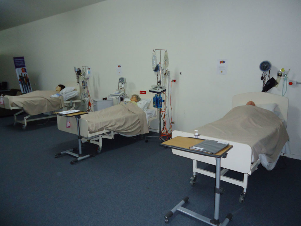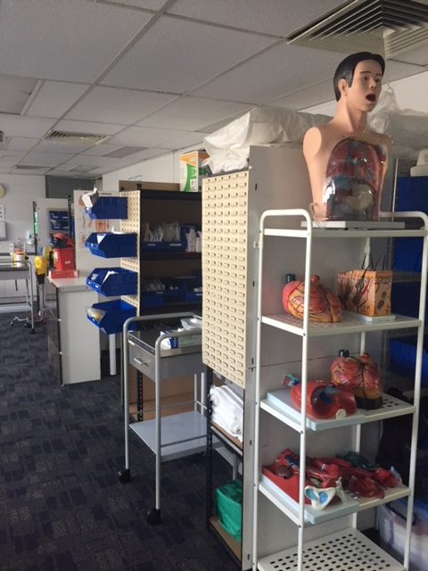 Our State of the Art facility has 2 lecture rooms for practical and theory classes, a fully equipped clinical lab with beds and mannequins, kitchenette, a student common breakout space, computer room and off street parking.